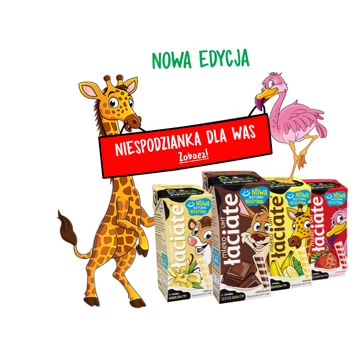 „Jaki ciekawy pseudonim można byłoby nadać surykatce, żyrafie, kangurkowi lub flamingowi z opakowań mleczek Łaciate? Wybierz 1 zwierzątko, zaproponuj pseudonim i uzasadnij swój pomysł.”